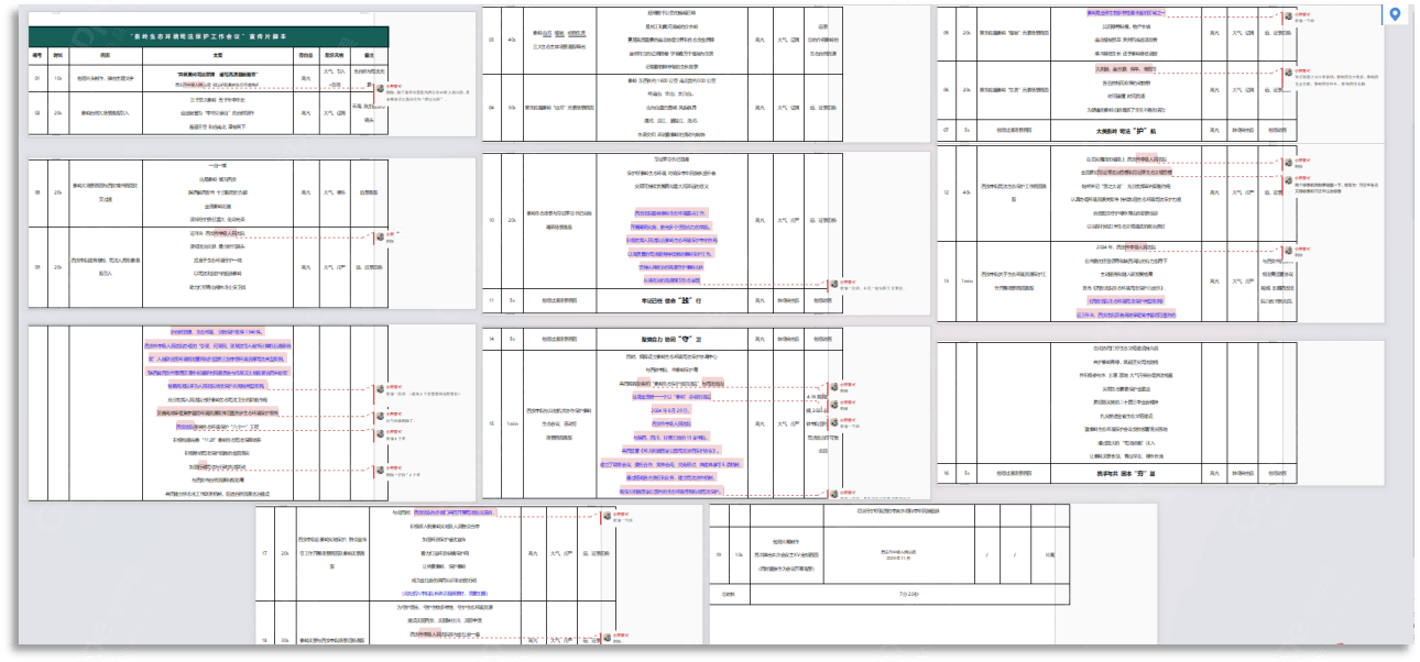 在正式接到客戶需求后,項目組即開始著手撰寫腳本。整部宣傳片在邏輯架構(gòu)共分為“秦嶺美景篇”和“司法保護篇”兩大篇章,腳本從秦嶺美景的描摹切入,通過大氣磅礴的秦嶺美景及豐饒的生