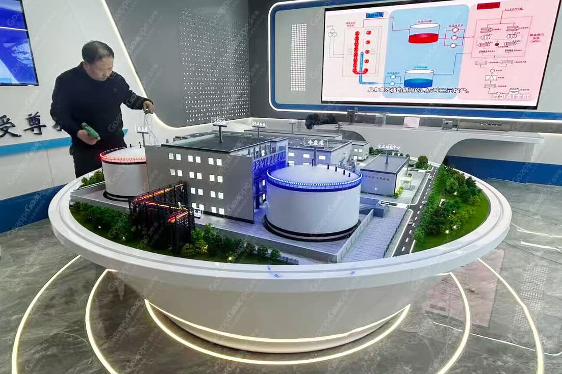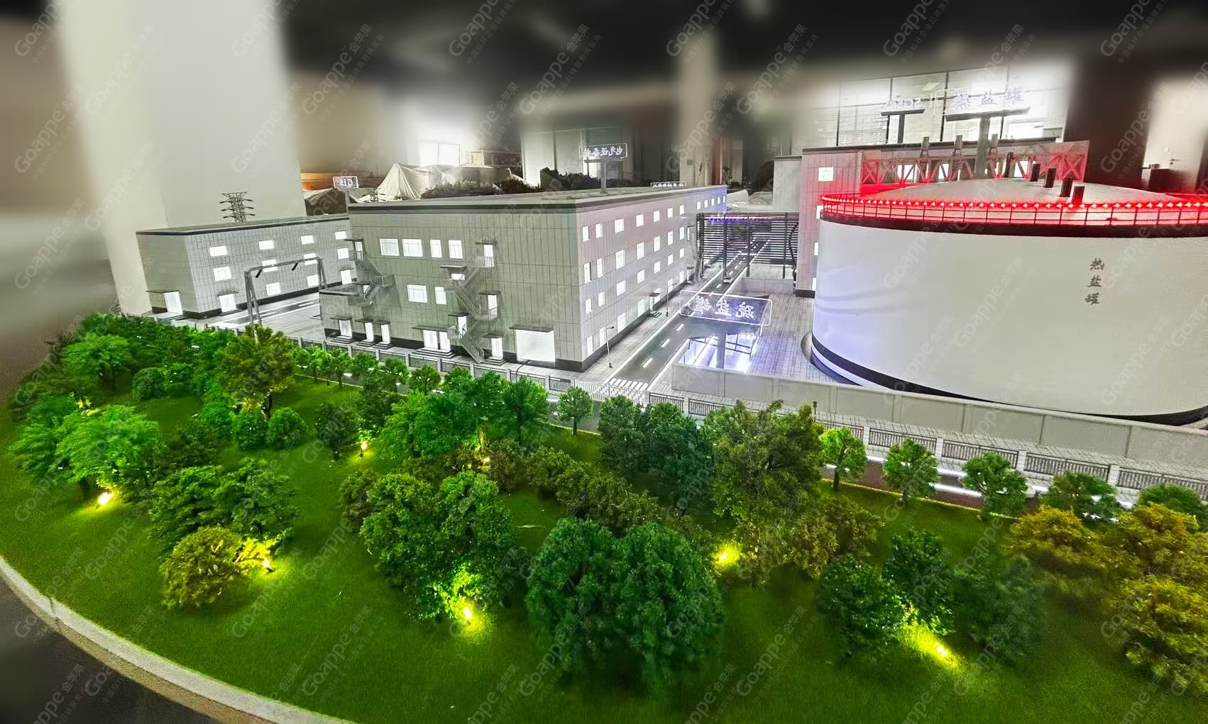 設(shè)計(jì)師基于基礎(chǔ)結(jié)構(gòu),同時(shí)結(jié)合實(shí)景情況,充分使用三維建模技術(shù),逐步搭建起整體框架,整體布局主要包括熔巖儲(chǔ)能中心、SGS樓、電器設(shè)備樓、GIS樓、熱鹽罐、冷鹽罐、蒸汽發(fā)生系統(tǒng)、高壓電加熱器、低壓電加熱器等,同時(shí)配備模擬燈光控制系統(tǒng),后續(xù)逐步斟酌每個(gè)建筑體的外立面、頂部,柏油路面,綠化環(huán)境,跑動(dòng)燈光,零星部件等細(xì)節(jié),確保以最高還原度復(fù)刻實(shí)景,加強(qiáng)模型后期展出的可說明性。